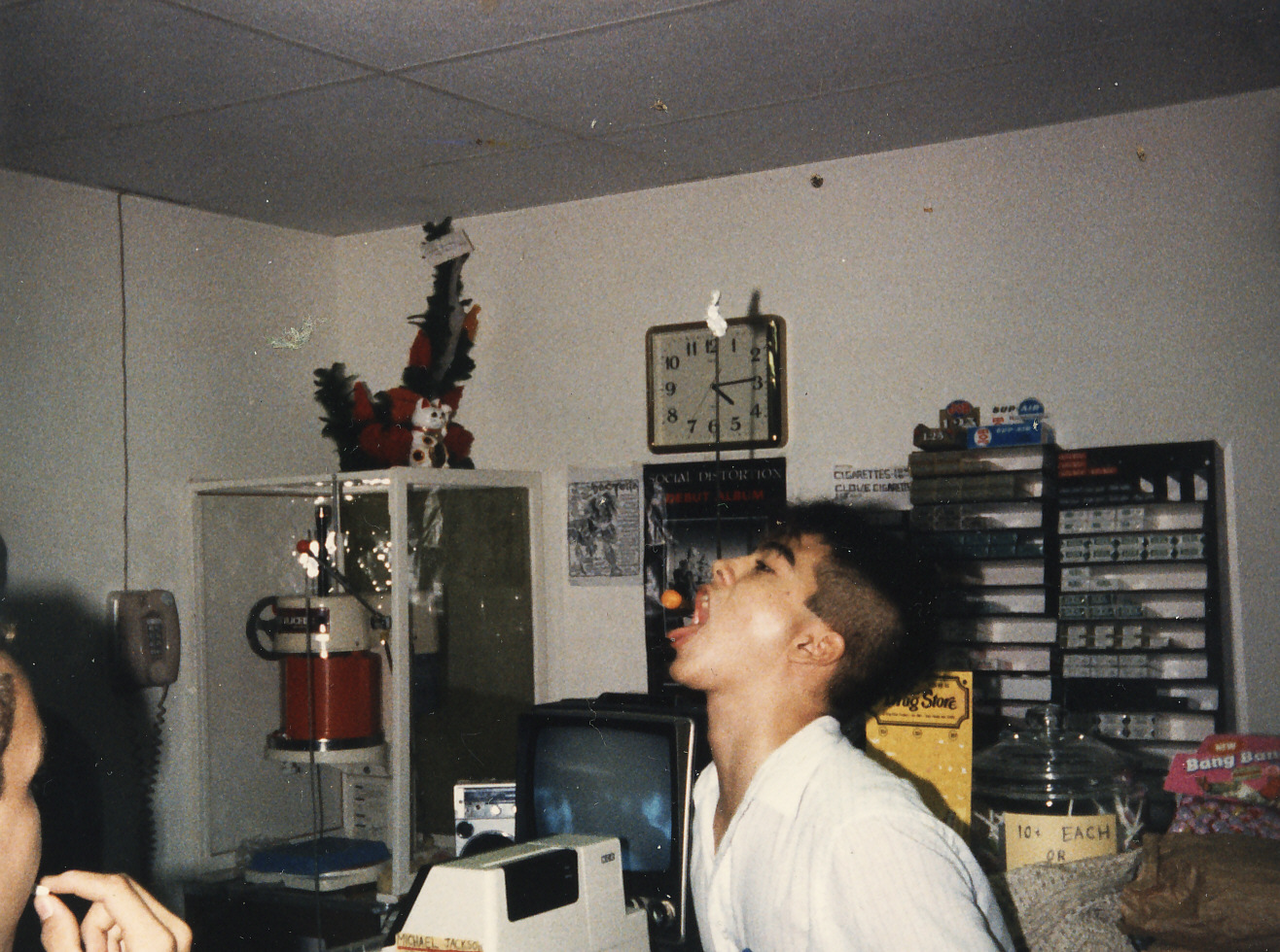 Around 1985, Barry Freeze ran Action Sundries, a shop on Kapahulu Avenue. Barry's Grandmother and Mom had run a sundries shop by Ala Moana for years. I remember going there and seeing that Barry had set up a little room in the back where he would listen to punk tapes on his breaks. When Barry finished highschool, his family helped him set up his own shop. It lasted less than a year, but it was a fun place to go when I was supposed to be looking for a job. Francis Sippin worked there sometimes, but Barry couldn't really afford to pay him all the time.