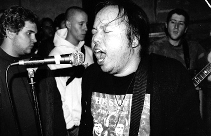 Lance Hahn played in a few Hawaii punk bands in the 80s, including Scarred For Life, Hypo-Depression, Fuckher, and Cringer. One of the earliest outfits he was in was a New Wave cover band with classmates from Kamehameha Highschool in the early 80s. Around 1984, he hooked up with Ed and Rich Tarantino, two brothers who had been part of the San Francisco Bay Area punk scene and who were running a record store called "Thrash and Scratch" selling mostly early American hardcore vinyl out of the trunk of their car. Lance had been listening to the Clash, Crass, and hardcore stuff, as well as heavy metal and rock and roll, all of which could be heard in his guitar playing. He was recruited to replace the guitar player for the Tarantinos' band Scarred For Life. When this line up of SFL split up, Lance recruited Dave, Gardner, and Ed to form a band. They had all known each other from earlier gigs which was not surprising given that the core of the Hawaii scene was a couple of hundred people at most in 1985. The band was dubbed "Cringer" which was Dave's fault as he was more into He Man and the Masters of the Universe than Anarchism or Maximum Rock and Roll at the time. Maybe the fact that they were practicing at Dave's parents' house made Lance hesitant to challenge the idea, which he would be stuck with for years to come. Lance had already made a lot of pen pals and connections with punks in the MRR scene and people and bands all over the world while he was still in Hawaii. In 1986 he moved to L.A. where a portion of the Hawaii scene had relocated. The AOK tape release label, which Lance had started with a handful of Hawaii punks like Francis Sippin of Free Will, and the Kroll brothers who went on to international success with Chokebore, now began putting out tapes from bands who were in contact with Lance as pen pals. These were truly international compilations, reflecting Lance's internationalist world view, which would soon become materially realized through touring Europe, Japan, the states, and elsewhere. He also kept putting out the zine version of AOK with the Hawaii crew in L.A. for a while. (The first two issues out of Hawaii can be read on this site.) Lance's interest in activism and revolutionary politics have always been a major part of who he is. In Hawaii, he had been active with anti-military/anti-war activities in and around the RCP, although never a member of that group. Once in L.A., he worked for the Committee for a Sane Nuclear Policy. This was the high point of the anti-nuclear movement in the mid 80s, and the group also lobbied and educated against Contra-aid, Reagan's death squad policy for Nicaragua. But niether of those groups really embody what Lance's more anarchist/Situationist based politics became. He moved Cringer up to San Francisco by the late 80s, which was perfect because he was now closer to both Maximum Rock and Roll, for which he had become a "shitworker", and to Gilman Street Warehouse. The Bay Area Anarchist punk scene was exploding, much of the activity centering around Tim Yohanan's MRR. At this time Lance had taken over the vocal duties from Gardner who was now concentrating on bass. Derek Imose, from Hawaii was playing drums. Lance was now singing his own lyrics, bringing a much more personal delivery of his mix of political, personal, and sometimes impressionistic songs. A while later, the third classic Cringer line up formed, with Kamala on drums, Harry on guitar, Lance on guitar and vocals, and Gardner on bass and occasional lead vocals. This is the line up that toured with Citizen Fish which was a major break through for the band. As Lance's connections and friendships mounted, Cringer was seemingly putting out a new 7" split, cd, or vinyl every other week. Lance's music picks were now appearing in the front section of MRR. Lance has always read voraciously and his songs and album graphics frequently reflected his readings on anarchism, Situationist theory, feminism, anti-racism, class struggle, and generally the "revolution of every day life". The politics and music were and are inseparable, and the networks of zines, indy labels, venues, and people are part of a larger phenomenon of mutual aid and the DIY Do it yourself ethic that the hardcore scene of the 80s had embodied, as had many art, literature, music, and social movements before it. It is also often just people having fun and expressing themselves, with varying types and degrees of political consciousness being articulated. Cringer was disbanded to dump the back catalog for live shows and make way for J-Church which was marked off from Cringer sonically, mainly by the more professional sounding drums. By the turn of the twenty first century, Gardner Pope, Lance's long time band mate had dropped out, perhaps marking some sort of milestone in that there were no more musicians who were tied to the Hawaii scene, or to Cringer which Lance had left home with. A look at the J-Church website shows that Lance has ammassed a body of interesting writing on punk, movies, politics, and more, never in a stuffy academic vein. As of November 2005 Lance is working on the last chapters for his book _Let the Tribe Increase_which will be a history of "the UK anarcho punk scene from the late `70s to the end of the `80s" and should have some stuff on the US scene and elswhere. He's been featured in John Moritsugu's film "Scumrock", in the book _The Philosphy of Punk_, as a regular contributor to Maximum Rock and Roll, and even did a stint as the guitar player for Beck. He has also been putting out records and cds on his Honeybear record label. |