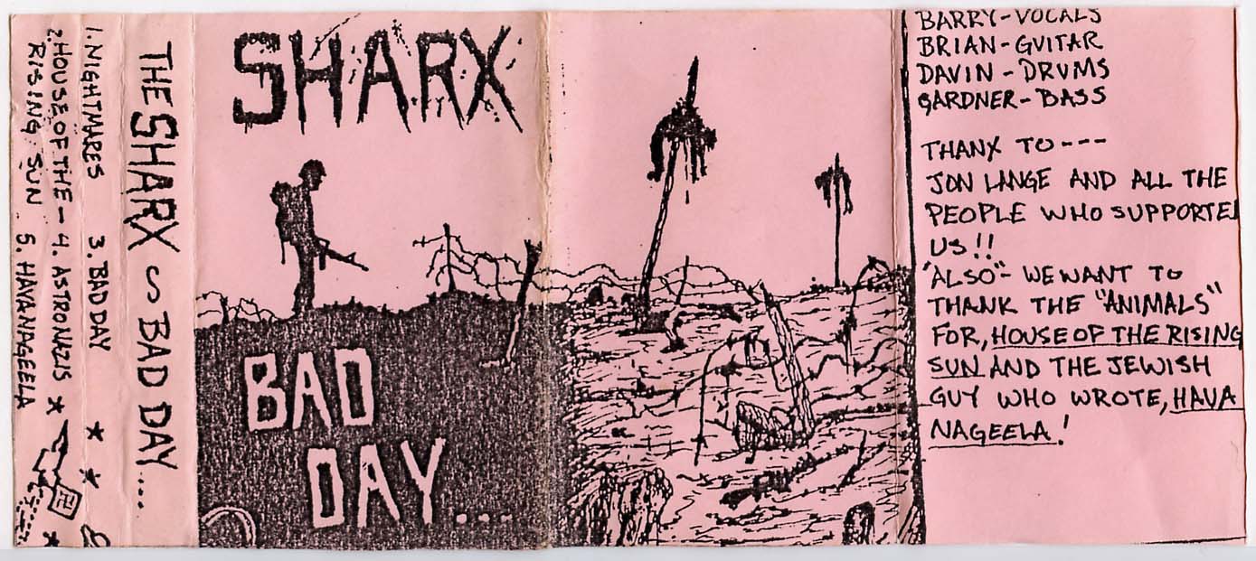 | Recorded and Produced by Dave Carr. Dave had a 1/2 track reel to reel and convinced the Sharx to record their first demo. The band was first recorded live with 2 mics, mixed live, and then the vocals were sung directly into the reel to reel, if I remember the process correctly. You get what you pay for! Ha ha. This was 1983 at the Walls' residence in Kailua. |