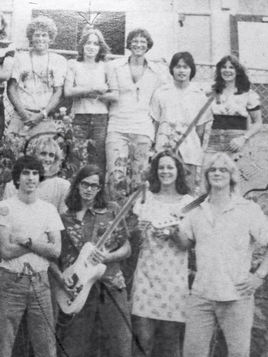 | I don't know everyone's names here but I'll provide some info. UH Lab School is a "laboratory school" meaning it's tied to the college and teacher education program and they engage in cutting edge type curriculum. Many of the early Hawaii punks from the Lab School were in the band program. Rudy went on to the New Dreamers and Squids. He played trombone in the band. Kevin played trumpet in the band and went on to Hypo-Depression and the Wrong. Sheldon played bass in the band and played with various musicians and bands in the 70s and 80s. Richard was a percussionist in band and played drums with some of the rock and punk musicians early on in the scene. Matt went on to Hat Makes the Man and several other bands mostly with Peter from Hat. |