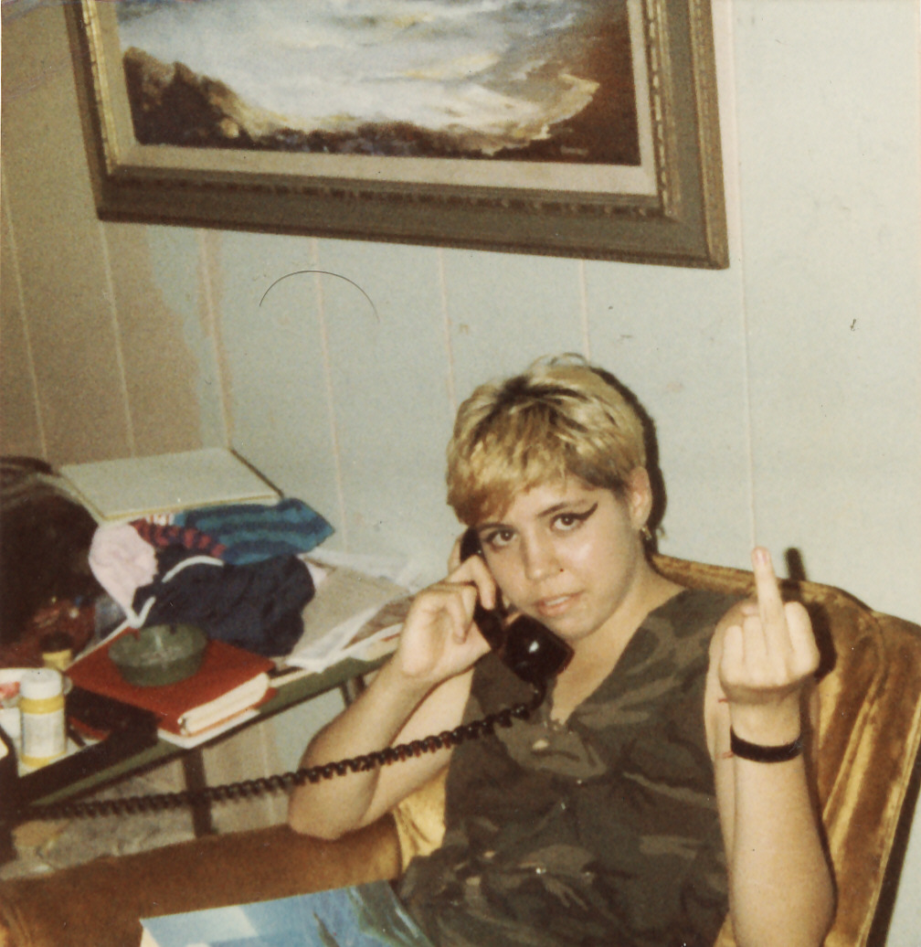 Raya flaunts her excellent taste in Music as Gavin Friday looks on. 1985 or 86. |