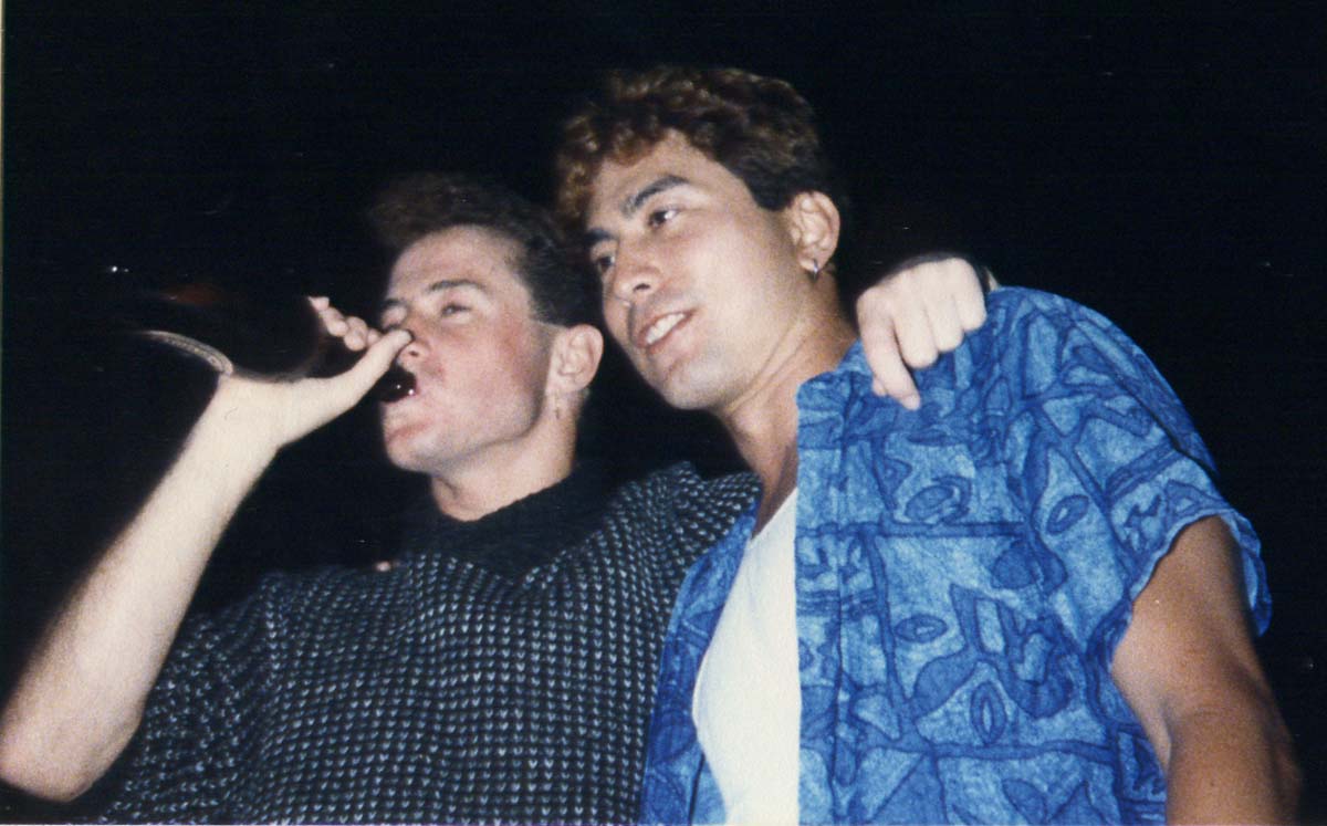 | O.K., they each deserve their own page, but I had this great photo. Peter Sedwick, a.k.a Doctor Sed, was an Aussie import to the scene is now a marine biologist. Mace Bacon starred in Rat Dog, and sang Ziggy Stardust on Request, including at the Vacuum's first ever performance.He was also a dj at KTUH. Mace is no longer with us and his biting humor, good looks, and talents are sorely missed. |